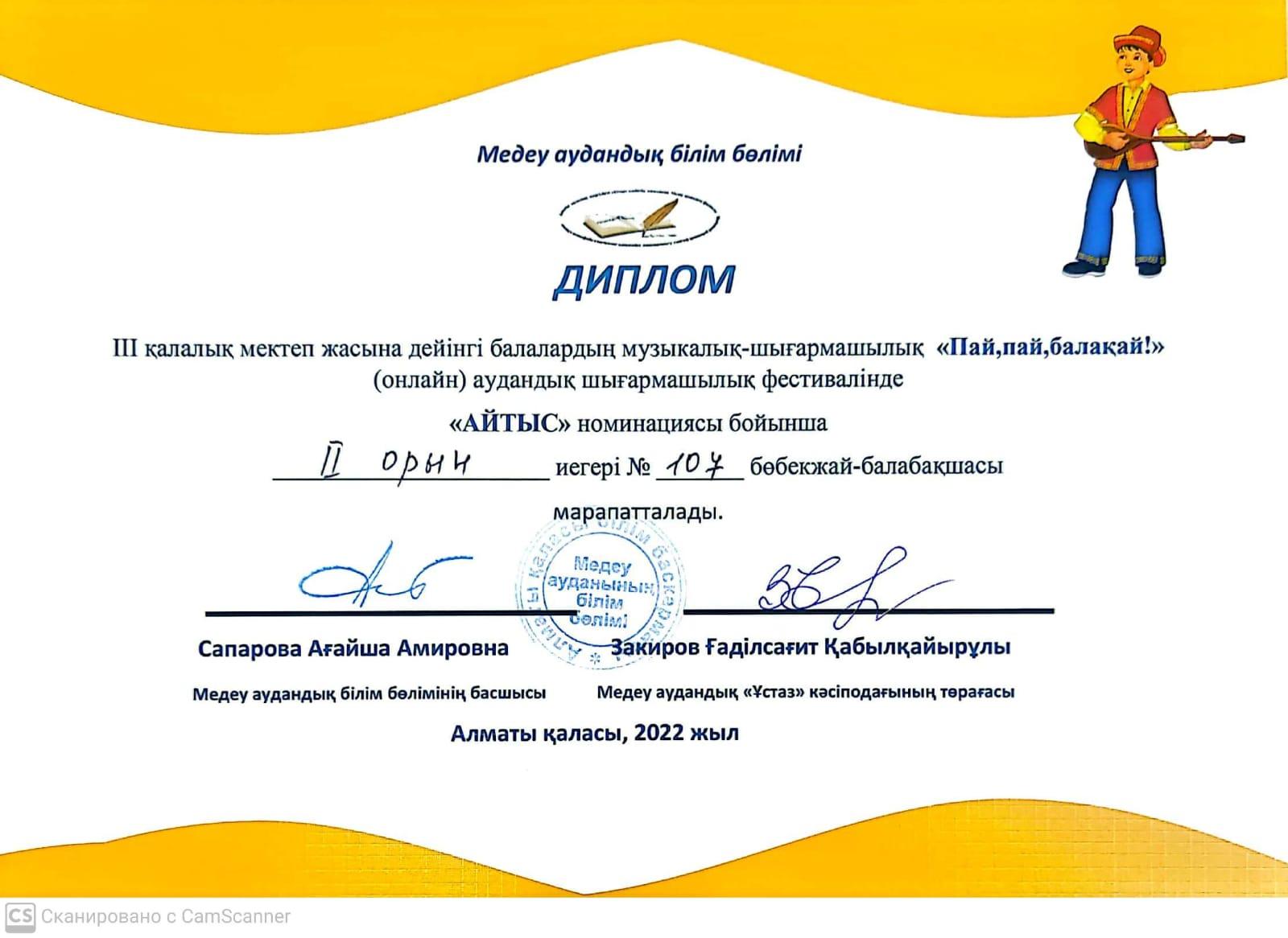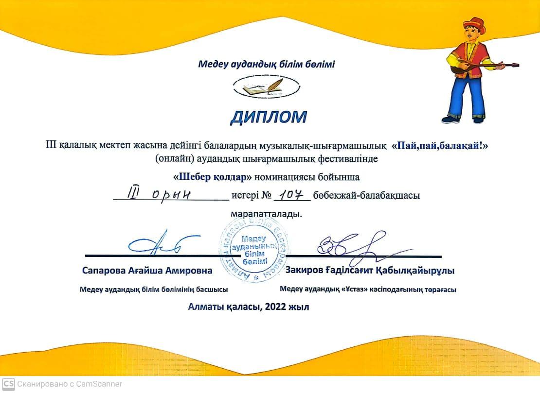 18 сәуір 2022 0 1 2 3 4 5 Байқау ІІІ қалалық мектеп жасына дейінгі балалардың музыкалық-шығармашылық "Пай, пай, балақай!" байқауының жеңімпазы