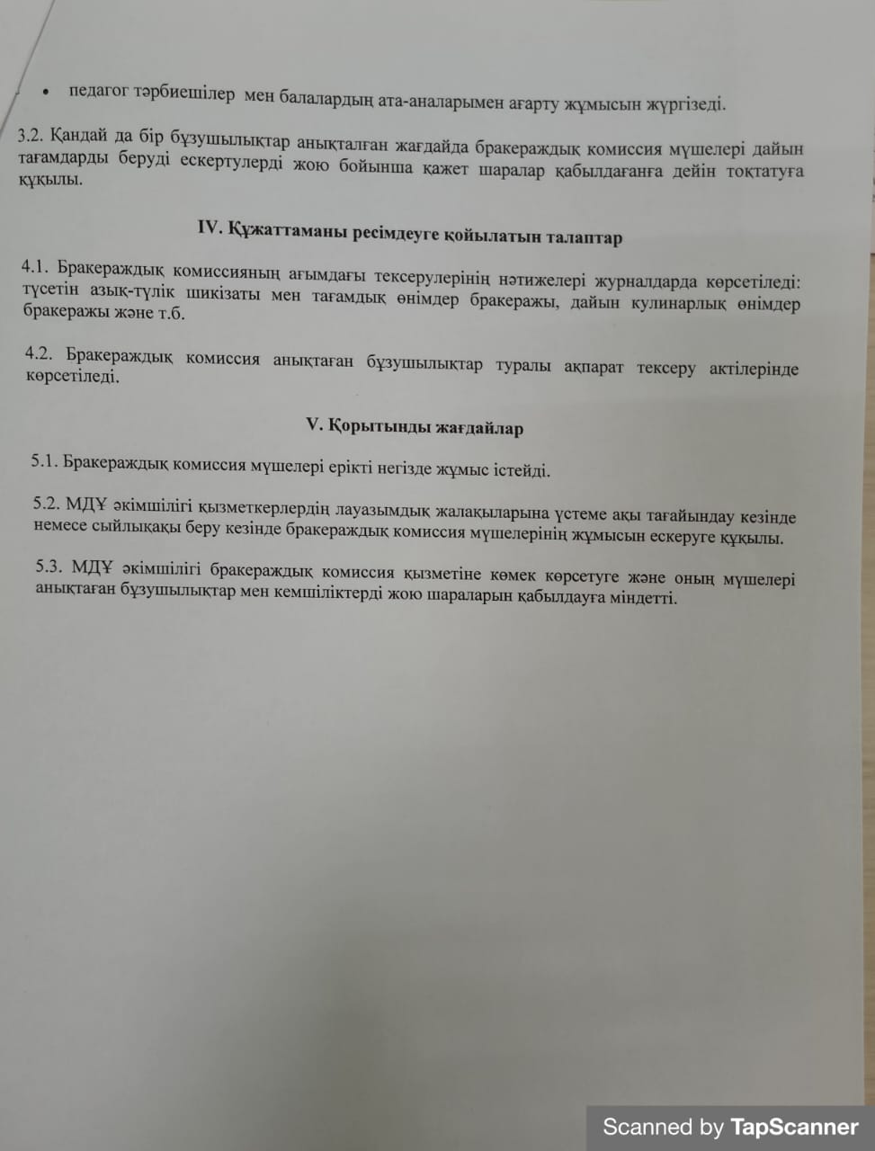 Бракераждық комиссия туралы ереже » «№107 бөбекжай-балабақшасы»